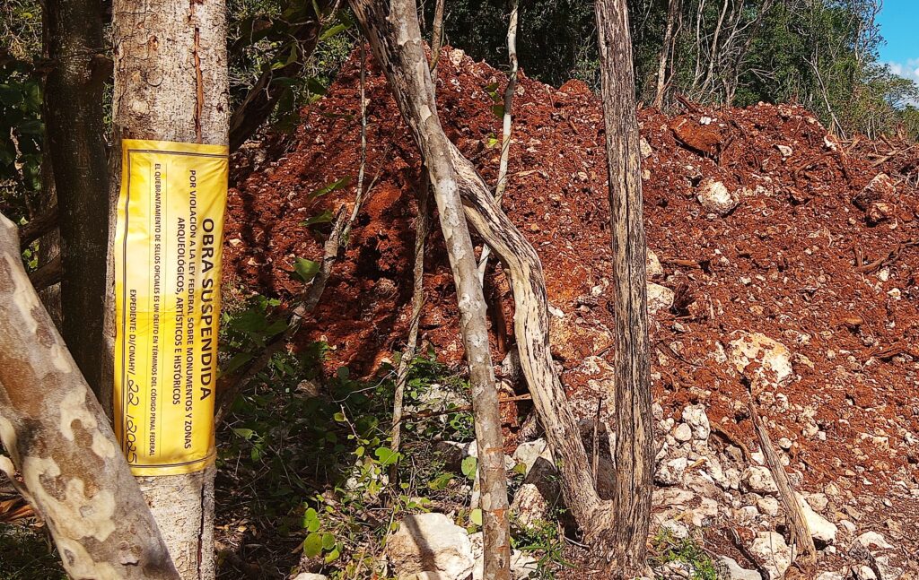 El 17 de octubre, el Consejo Comunitario de Kinchil entregó por escrito una denuncia al INAH para dar parte de la destrucción del patrimonio maya que cometió la empresa CRIO para construir módulos de aves. Y aunque suspendieron la obra, la maquinaria siguió trabajando.