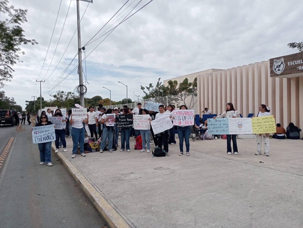 Mérida, Yucatán.— Más de 250 estudiantes de la Escuela Normal de Educación Primaria “Rodolfo Menéndez de la Peña” bloquearon ayer miércoles 11 de febrero el acceso principal del plantel, ubicado sobre la calle 61, para exigir la destitución inmediata del director, Hilario Leoncio Vélez Merino, a quien acusan de abuso de autoridad, hostigamiento y encubrimiento de presuntas conductas indebidas dentro de la institución.